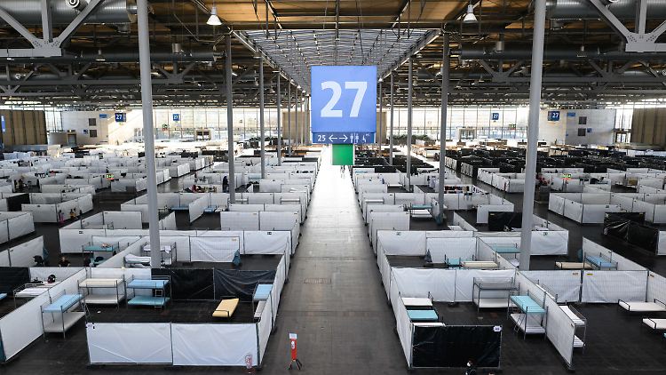 In der Messe Hannover werden Betten für Geflüchtete bereitgestellt.