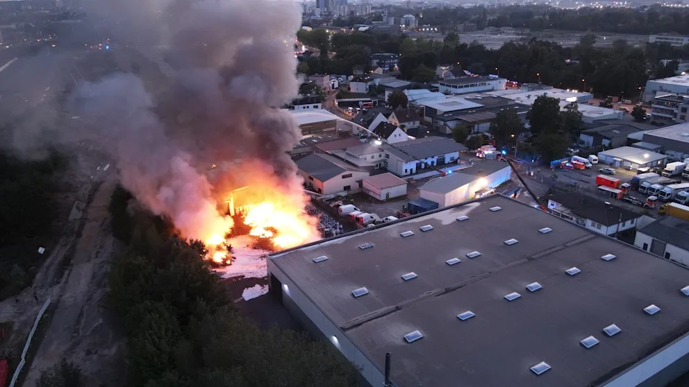 Riesen-Rauchwolke über Offenbach Batterie-Recycling-Firma in Flammen
